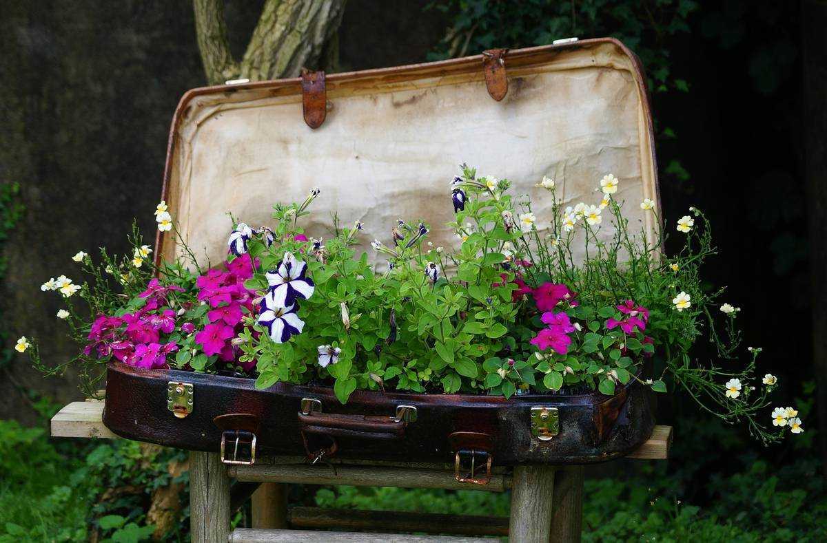 - Место высадки растений. Цветы высаживают не только на отведенных местах, а и возле ограждений, под стенами беседок, под окнами дачного домика, в полисаднике. Красивое украшение беседки дополняет душистый горошек, ипомея или вьющаяся фасоль, клематис. В модульных цветниках высаживают растения герани, бегонии, петунии.