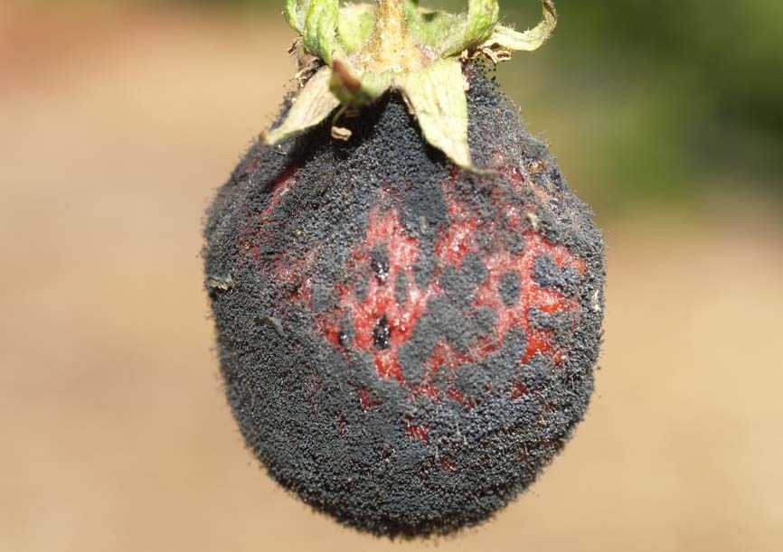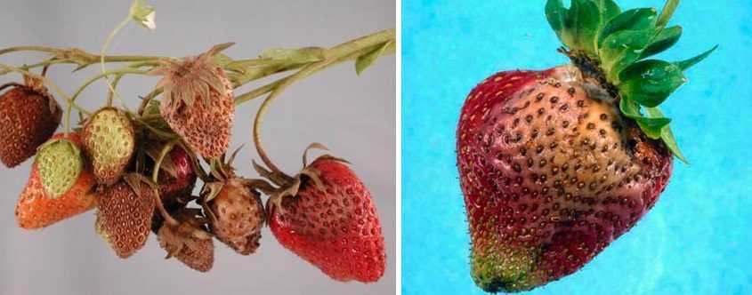 Черная гниль развивается при высоких влажности и температуре, когда первый показатель достигает 85%. Клубничины покрываются бурыми пятнышками, которые затем темнеют практически до черного. Сами плоды меняют свои консистенцию и вкус так, что водянистые плоды становится просто невозможно есть. Белая гниль поражает как ягодки, так и листья клубники. Пластины сперва меняют цвет на белый, а затем просто засыхают. Плоды же сразу начинают гнить, образуя неприятный пушок такого же цвета, а корневая система покрывается слизью.
