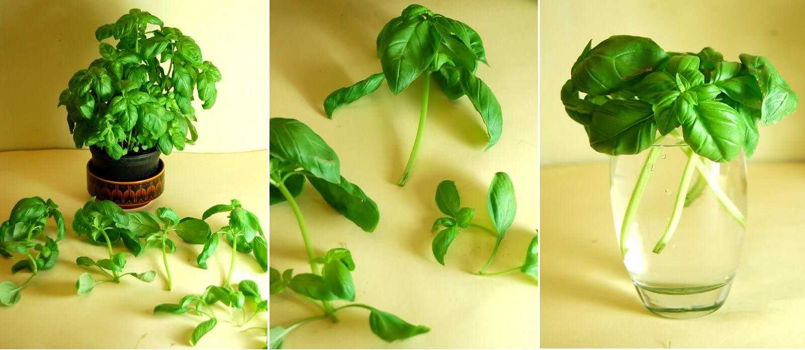 Если есть возможность срезать веточки со старых растений или взять отводку с покупного базилика, то можно поступить следующим образом: