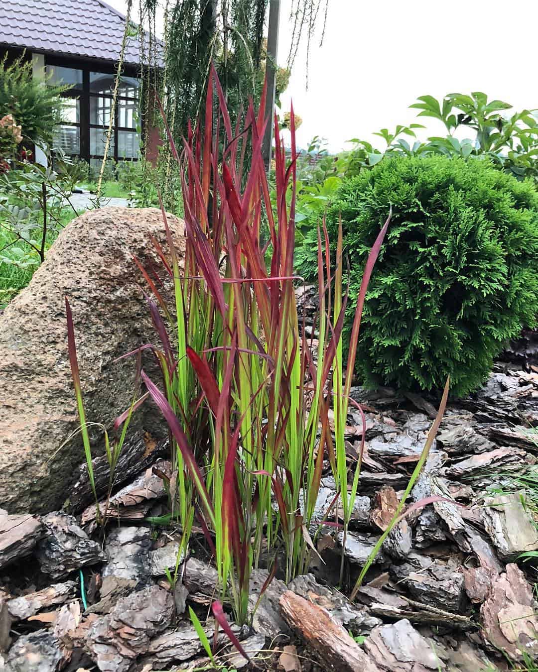 Сорт «Ред барон» массово применяется для формирования композиций японского сада