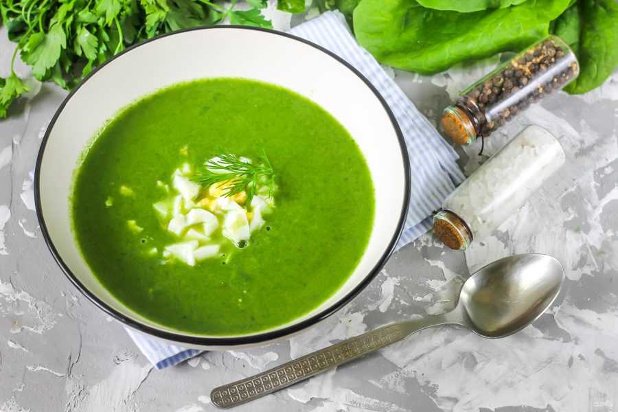 Луковицу измельчите и обжарьте на растительном масле в небольшом сотейнике до румяности. Добавьте измельченный шпинат и томите пару минут. Влейте пару стаканов воды, доведите до кипения. Посолите, добавьте любимые специи. Проварите еще буквально минуту и снимите с огня. С помощью погружного блендера пюрируйте суп. Перед подачей добавьте нарезанное кубиками яйцо.