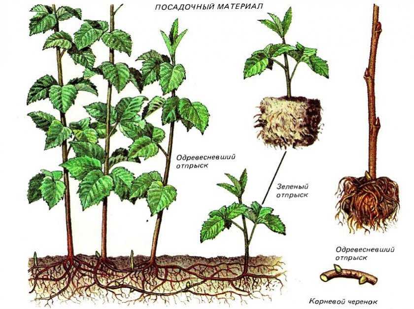 Так как эта разновидность малины не боится лёгких заморозков, к посадке приступают с последних чисел марта (лучшие сорта — Абрикосовая, Бабье лето 2, Бриллиантовая). В условиях умеренного белорусского климата сажать ягодные кустарники можно целый месяц — до конца апреля