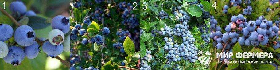 Рисунок 1. Лучшие сорта для Сибири: 1 – голубая россыпь, 2 – таежная красавица, 3 – Шегарский, 4 – Юрковский
