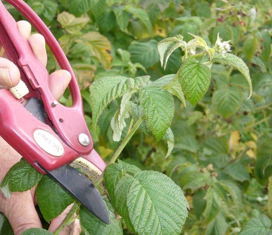 В октябре или ноябре проводится обрезка кустов. Это поможет увеличить будущий урожай, а также защитить малину от вирусов и вредителей. Побеги обрезают, оставляя пеньки высотой 3 см. В апреле подмёрзшие и высохшие стебли укорачивают до здоровой почки. Также полностью удаляют корневую поросль. Иначе она будет забирать из почвы часть питательных веществ, что негативно отразится на развитии малины.