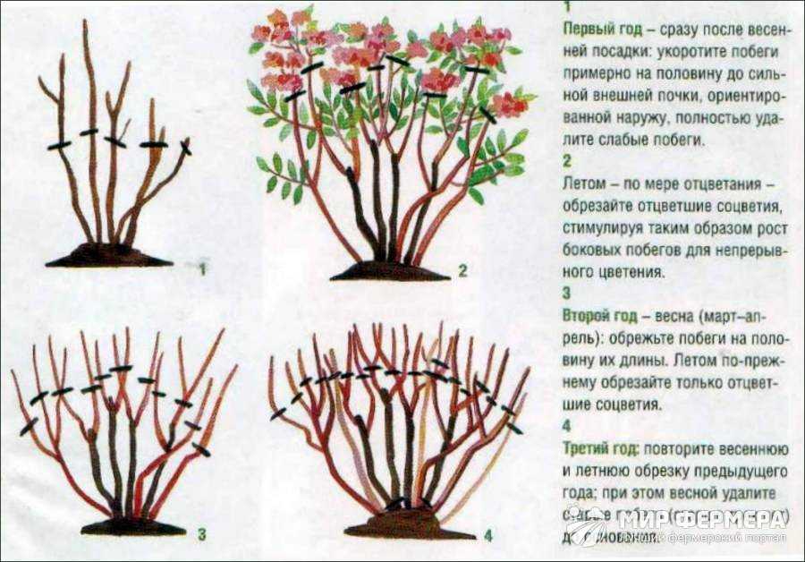 После такой процедуры от ранее пышного куста остаются одни пеньки. Но не нужно опасаться, что растение погибнет: постепенно на месте старых веток образуются молодые цветущие побеги.