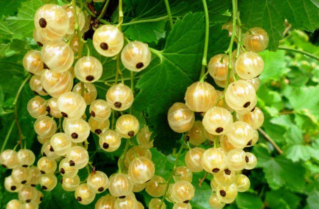 Куст сорта «Белая фея» среднерослый, вырастает до 1,5 метра, густо усыпан листочками и побегами. Плоды средних размеров, весом до 0,8 грамм, белые с желтым отливом, на вкус сладкие с легкой кислинкой. По сроку созревания его относят к среднеспелым, куст начинает плодоносить через три года после посадки. Сорт урожайный, один куст приносит около 7 кг плодов. Использование ягод универсальное. Сорт устойчив к холодам и болезням, самоплодный.