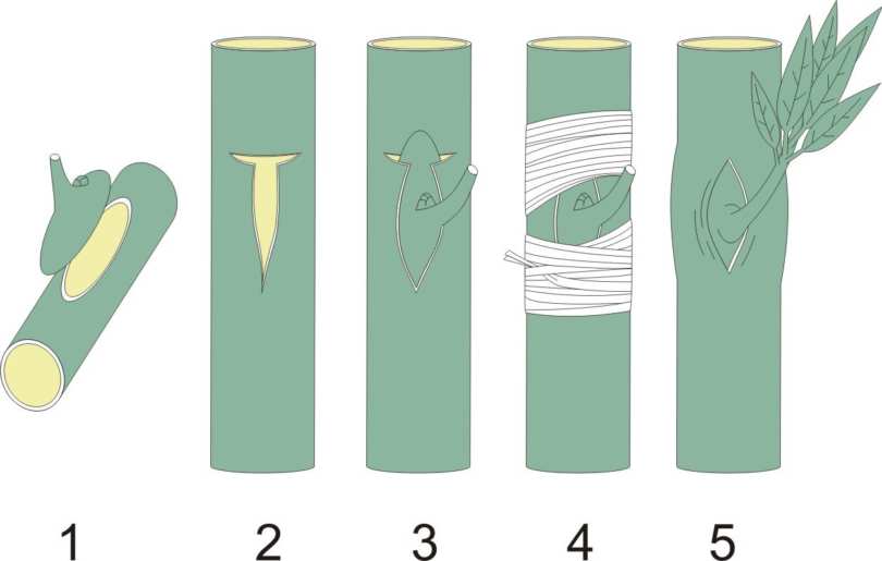 - Срезанную часть с побега вставляют в надрез и хорошо фиксируют эластичным материалом. Почка должна остаться открытой.