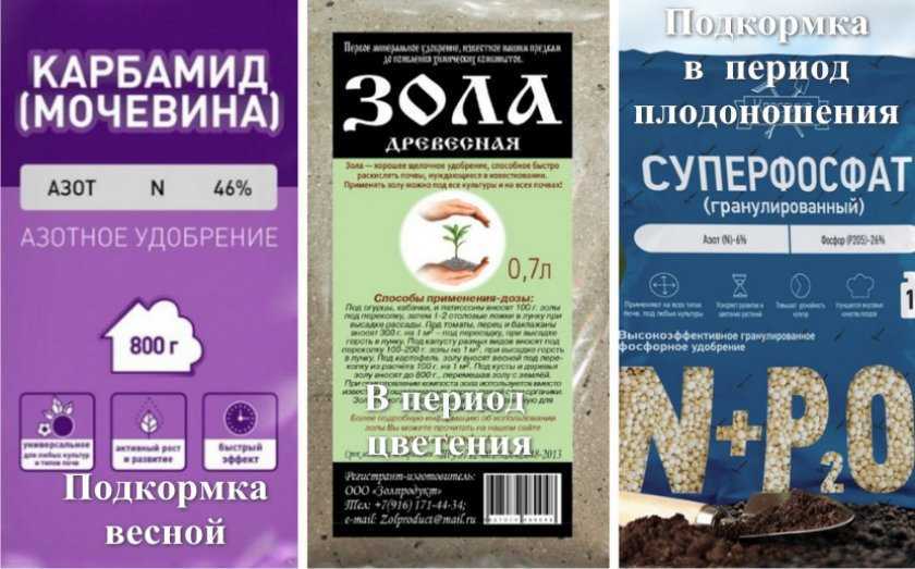 - в период плодоношения — жидкий раствор калия и фосфора (по 50 г суперфосфата и калийной соли).