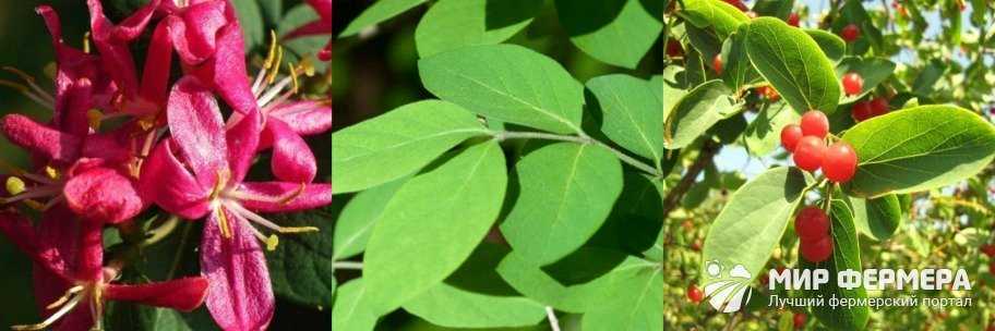 Рисунок 2. Так выглядят листья, соцветия и плоды кустарника